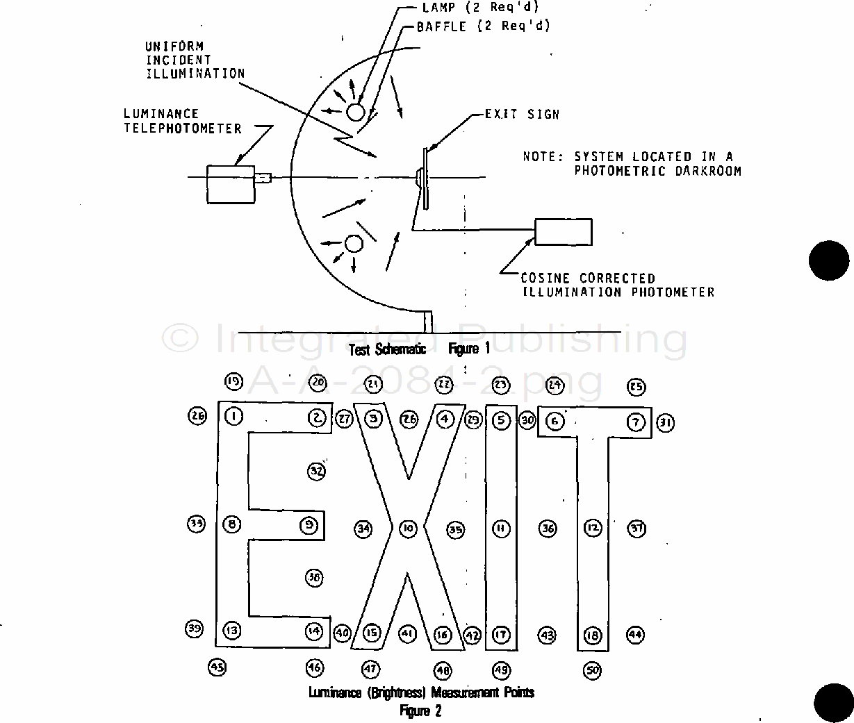 Conformance. Exit signs (lights) shall meet with the stated requirements and comply with the applicable requirements of UL 924 with the exceptions of Sections 30A and 30B, and NFPA 101 Life Safety Code, 1981.
